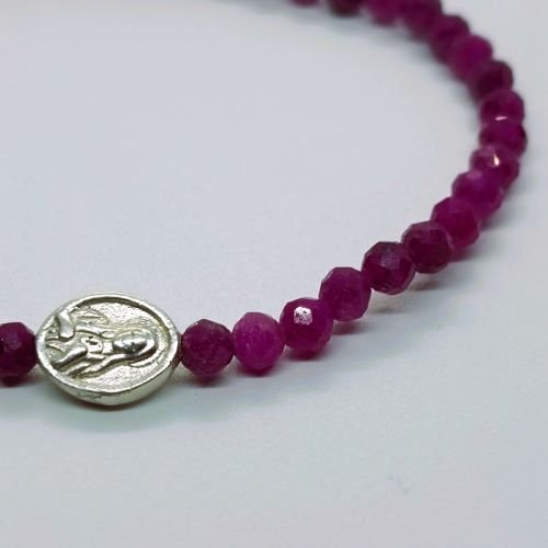 Brojanica od Rubina sa Srebrnom Bogorodicom (4 mm) – Dragulj Vere