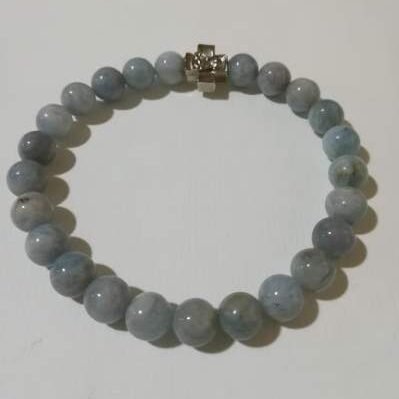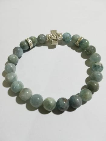 Brojanica od akvamarina srebro 925 je ručni rad napravljena od poludragog kamena akvamarina , perle su veličine 8 mm i elementi su od srebra a takodje i krst je od srebra.