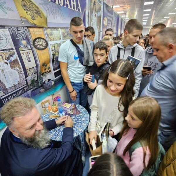 И пре него је стигао, са књигама у рукама чекали су оца Пеђу и данас пред штандом “Природног тамјана” на 67. Међународном сајму књига у Београду.