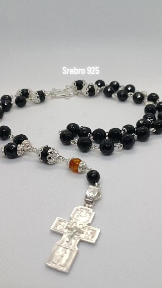 @brojanicemilojevic Brojanica od oniksa na srebru. Brojanica je ručni rad unikatni. Kombinacija kamena prve klase poludragi kamen oniks sa elementima od srebra i ćilibarom. Krst od srebra je dvoreljefni pravoslavni, sa jedne strane je Isus Hristos na golgoti...