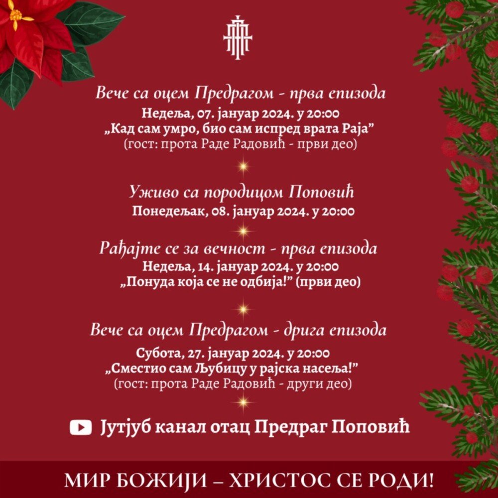 Program na Jutjub kanalu „otac Predrag Popović“ za praznike